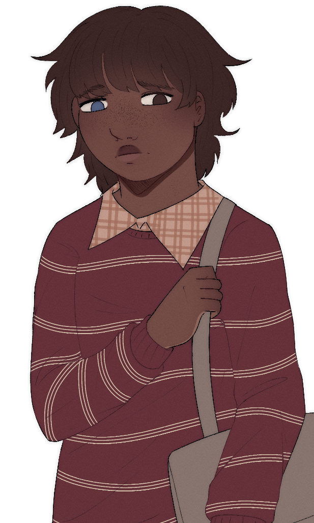 Seb is a shy, quiet boy who enjoys spending time drawing in his giant sketchbook, which he carries at all times. He keeps to himself most of the time, but is known for being very sweet and caring, so most people in the student body like him.